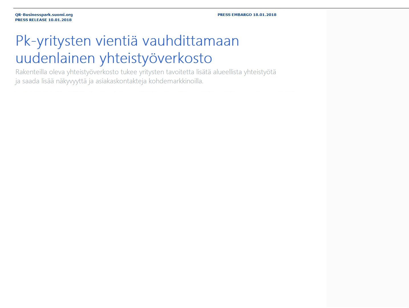 Kokonaan suomalaisten toimijoiden hallitsema QR-Businesspark.suomi.org on koordinoimassa