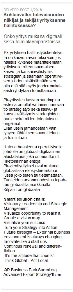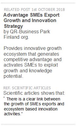 ![]() There is a clear link between the growth of SMEs exports and ecosystem based innovation activities. QR-Businesspark.suomi.org ® - Advanced Export Strategy