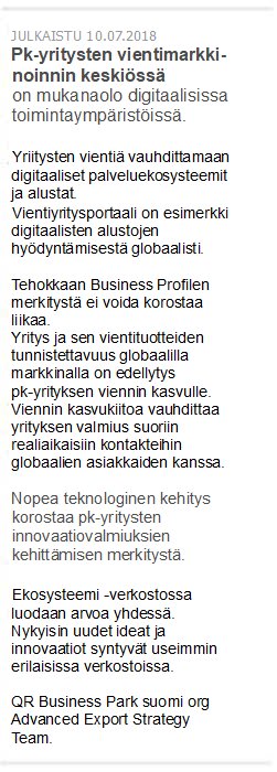 BUSINESSPARK EXPORT FINLAND PORTAL ® - QR-COMPANY PROFILES+ ® PRO EXPORT FINLAND